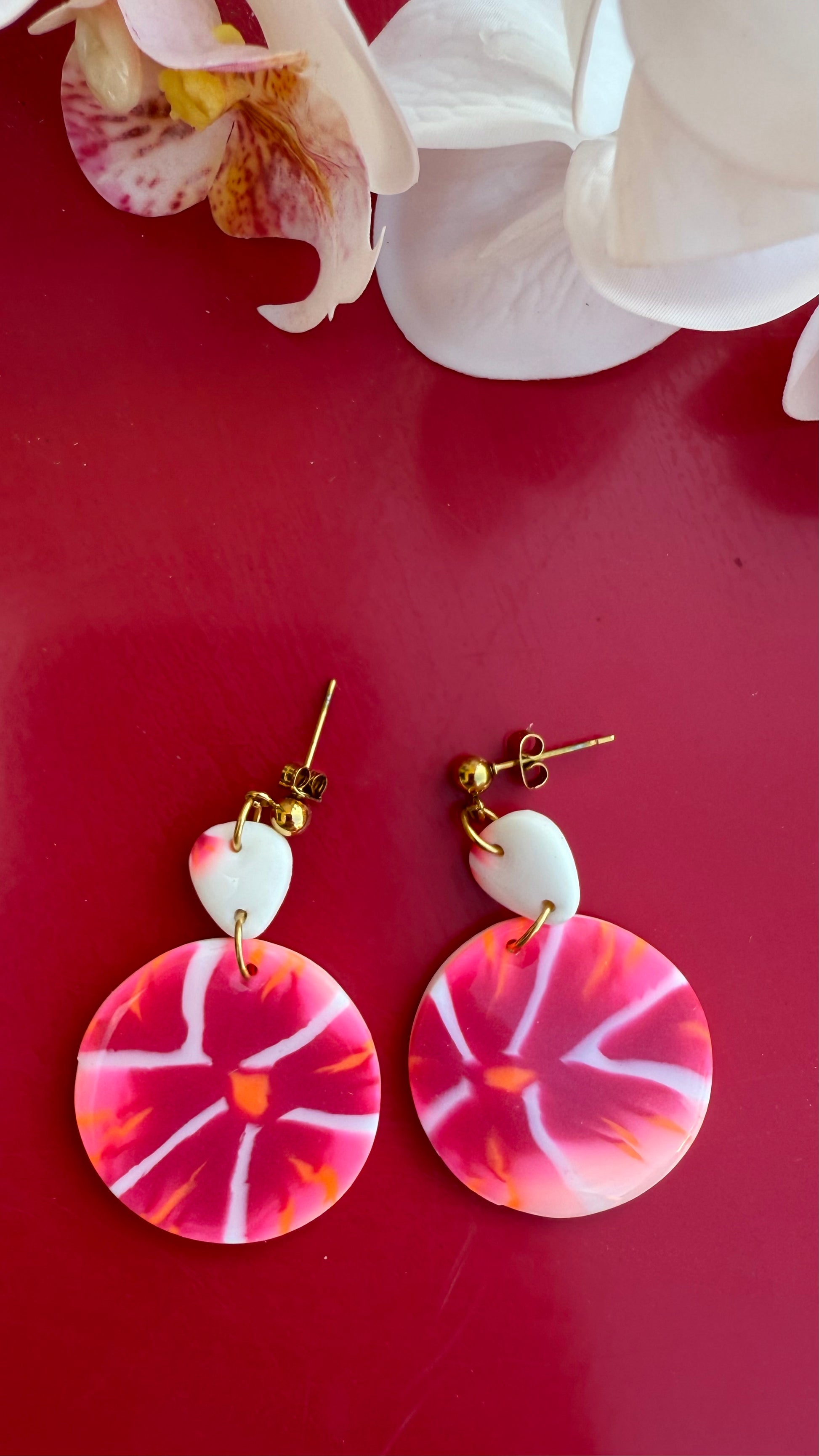 🌿Argile polymère + résine + acier inoxydable ( idéal pour les oreilles sensibles )